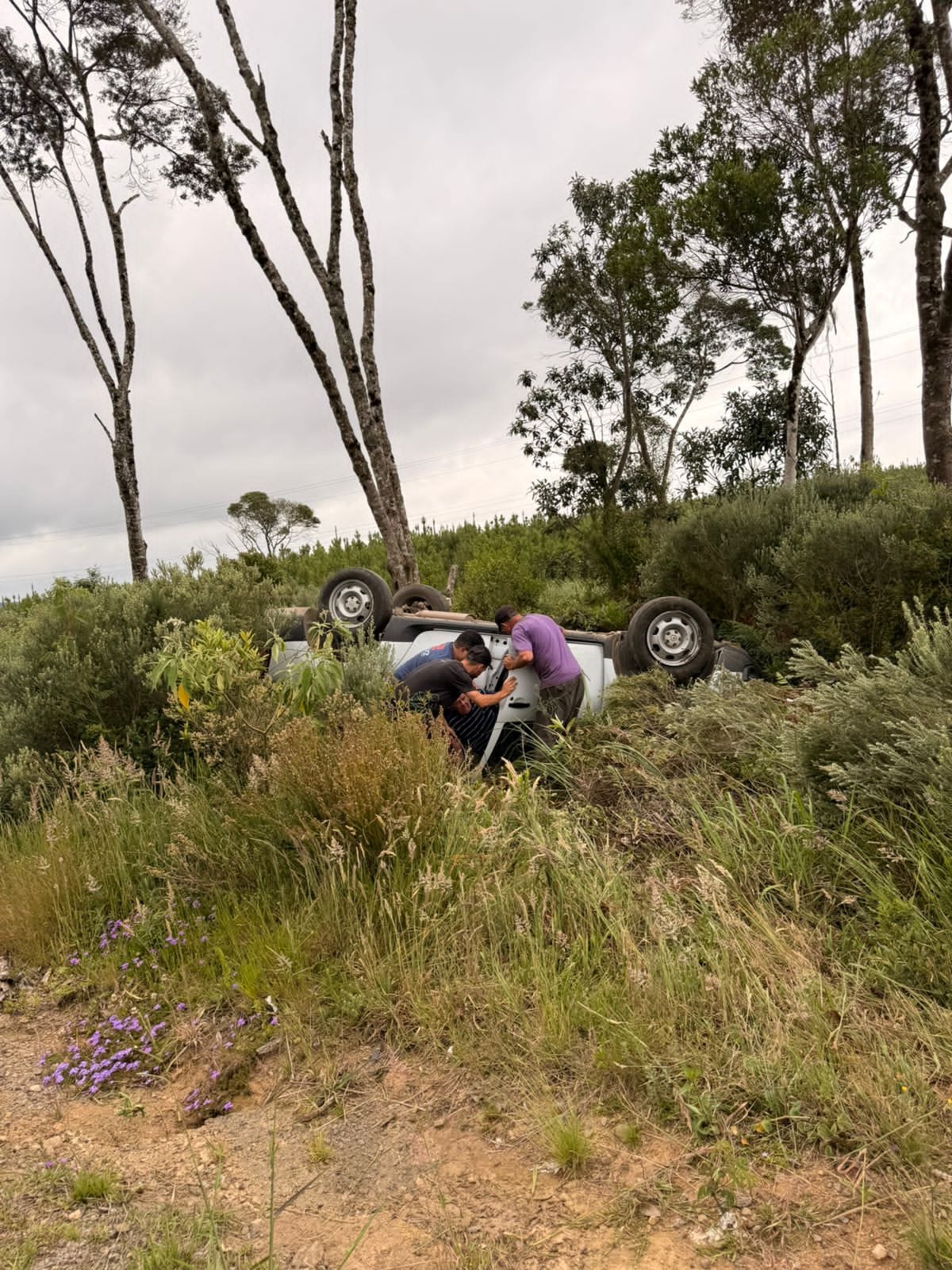 Veículo capota na rodovia 235 sentido São Chico- Canela.